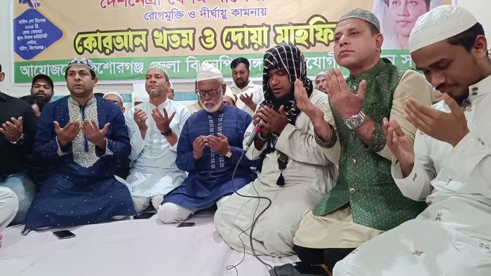 কিশোরগঞ্জে বিএনপি চেয়ারপার্সন বেগম খালেদা জিয়ার আশু রোগমুক্তি কামনায় জেলা বিএনপির উদ্যোগে কোরআন খতম ও মিলাদ মাহফিল অনুষ্ঠিত হয়েছে। সোমবার (০১ ডিসেম্বর) দুপুর ১২টায় শহরের বত্রিশ এলাকায় একটি কমিউনিটি সেন্টারে এ অনুষ্ঠানের আয়োজন করা হয়।